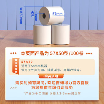 得力(deli)57*50mm20米*100卷 白令海热敏餐饮纸 京东美团外卖餐饮小票纸 ZS124【适配58mm机器 5801P等】