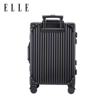 ELLE法国24英寸黑色行李箱男女通用拉杆箱轻便旅行箱万向轮TSA密码箱