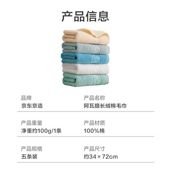 居家布艺---毛巾/浴巾/浴袍---毛巾京东京造京东京造 国标A类 抗菌长绒棉毛巾 轻柔款5条装 新疆阿瓦提全棉毛巾(白+米+灰+天空蓝+绿) 吸水柔软