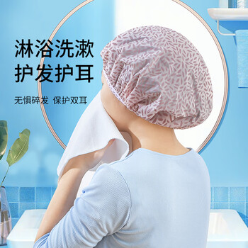 美丽雅浴帽浴室洗澡成人儿童防水沐浴帽淋浴护发帽厨房防油烟头套 2只