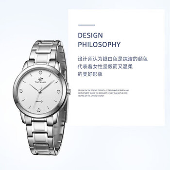 天王(TIAN WANG)手表女士 生日礼物沧海系列简约钢带石英表白色LS3887S-A-3