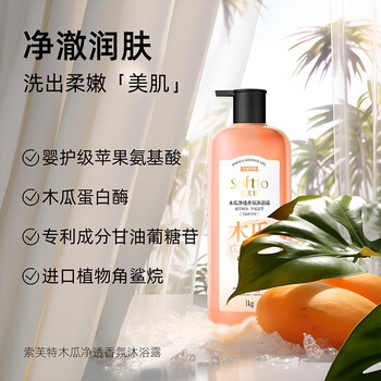 索芙特木瓜净透香氛沐浴露1kg男女持久留香滋润嫩肤家庭装大容量沐浴乳