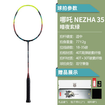川崎(KAWASAKI)羽毛球拍全碳素超轻单拍哪吒35进阶礼盒套装(已穿线含手胶)