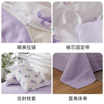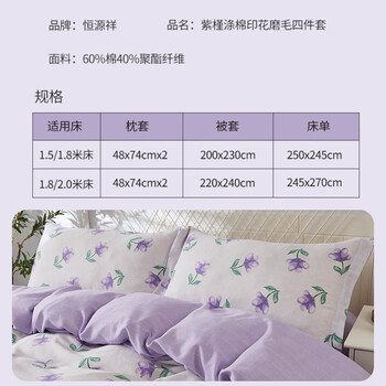 恒源祥四件套涤棉加厚耐用超软亲肤床品套件秋冬(被套2*2.3m)紫槿