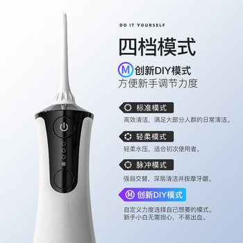 拜尔 电动冲牙器M4 便携磁吸充电式正畸洗牙器300ml大水箱+4喷嘴 白色