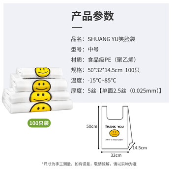SHUANG YU背心塑料袋【加厚32*50cm/100只】食品打包袋马夹袋方便胶袋批发