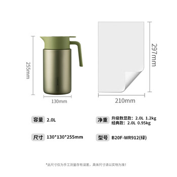 九阳(Joyoung)保温壶智能温显壶家用大容量户外水壶316L不锈钢水瓶2LWR912(绿)