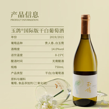 西鸽酒庄玉鸽国际版干白葡萄酒750ml 宁夏贺兰山国产女士红酒送礼