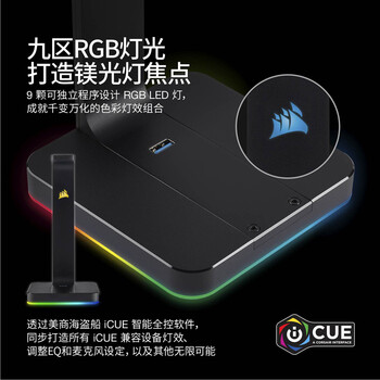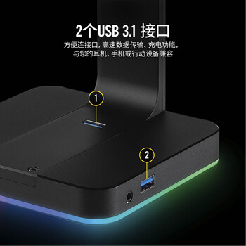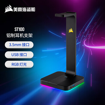 美商海盗船 (USCORSAIR) ST100 铝制耳机支架 3.5mm接口 黑色 USB接口 7.1声道 RGB灯光