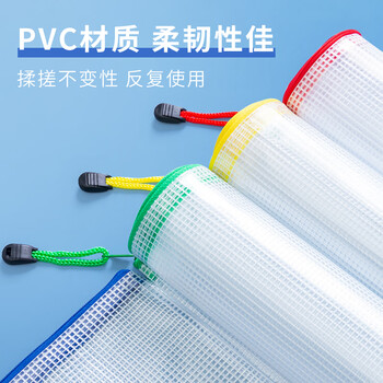 晨光(M&G)文具5个A4透明网格拉链袋 办公文件资料防水袋 学生试卷课本收纳袋 档案票据整理袋 红色ADM929F5-B