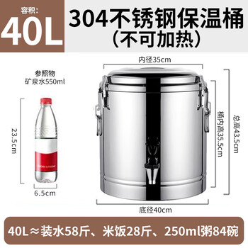 全适304不锈钢保温桶40L商用大容量奶茶桶储物桶食堂饭桶保冷桶带龙头