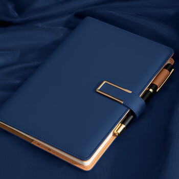 嘉然恒商务a5本子笔记本皮面文具加厚搭扣记事本高颜值日记本工作日志办公会议记录本可定制 蓝色