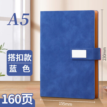嘉然恒 商务活页本加厚羊巴皮笔记本本子文具不咯手活页记事本搭扣日记本办公工作会议记录本可定制 A5蓝色