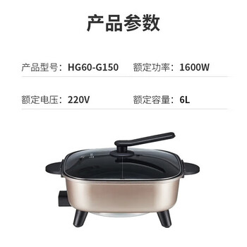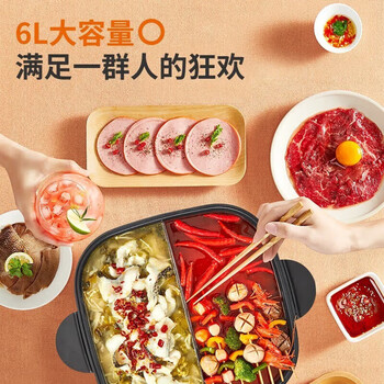 九阳(Joyoung)电火锅电热锅多功能大容量家用火锅料理锅 6L平底锅 HG60-G150