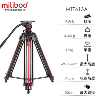miliboo米泊MTT613A铝合金摄像机三脚架专业快锁一键升降摄像单反相机三角架一锁三带阻尼微调液压云台