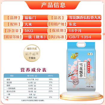 福临门 雪花飘香大米 长粒香大米 10斤 东北大米