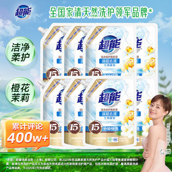 超能 洁净柔护洗衣液 橙花茉莉香 16斤整箱(1kg*8袋) 15分钟快洗