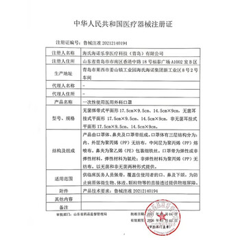 产品由口罩体、鼻夹及口罩带…(详见说明书) |