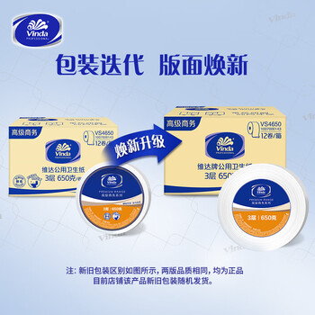 维达(Vinda) 卷纸 3层650克*12卷大卷纸 大盘纸纸巾加厚舒适 商用家用商场酒店物业办公卫生纸厕纸 整箱销售