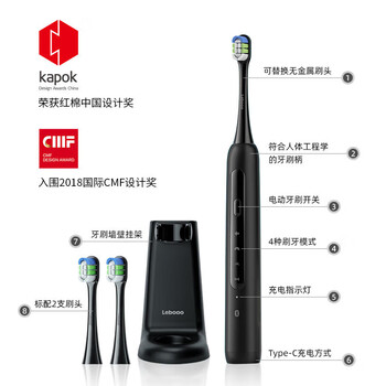 牙刷主体*1 刷头*2 挂架*1 说明书*1 Type-C充电线*1