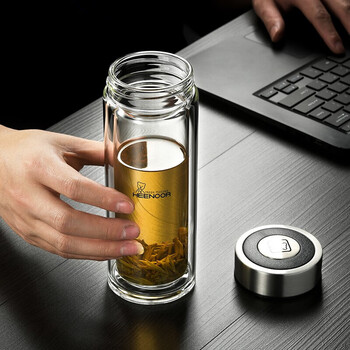 希诺双层玻璃杯男家用商务办公泡茶杯子过滤车载水杯XN-9607 410mL