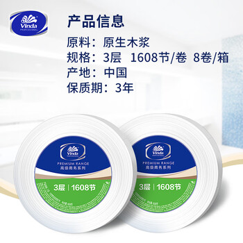 维达(Vinda) 卷纸 3层1608节*8卷大卷纸 加厚大盘纸纸巾 商用家用商场酒店物业办公卫生纸厕纸 整箱销售