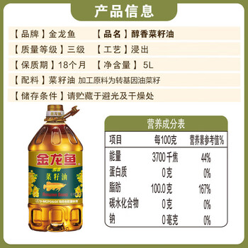 金龙鱼 食用油【保真菜籽油】醇香(纯香)菜籽油5L(新老包装交替发货)