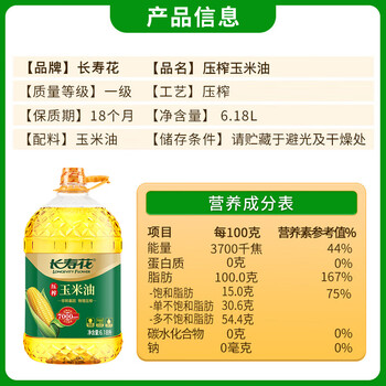 长寿花 压榨玉米油6.18L 食用油 富含植物甾醇 非转基因