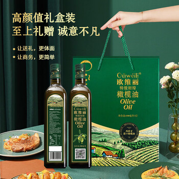 欧维丽(Ouweili)保真橄榄油 西班牙进口原油特级初榨橄榄油礼盒500ml*2瓶