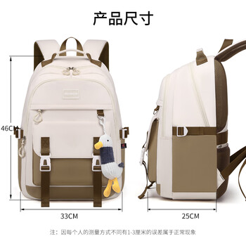 爱迪生发明家初中生书包大容量多隔层背包男女生高中学生双肩包 K071-3 卡其色