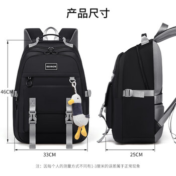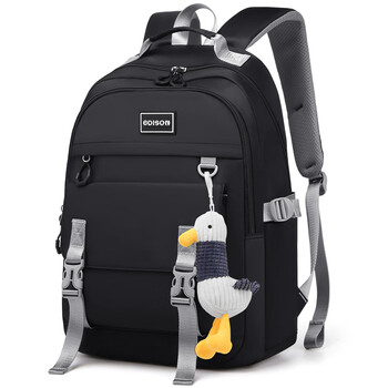 爱迪生发明家初中生书包大容量多隔层背包男女高中学生简约双肩包 K071-1 黑色