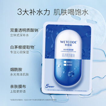 水密码玻尿酸补水面膜25g*5片保湿深层滋润男女面膜