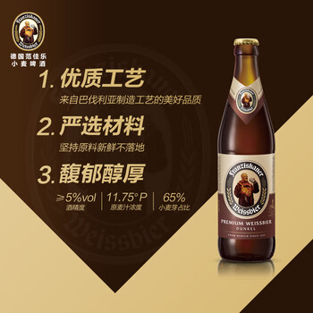 范佳乐(原教士)大棕瓶 德国小麦黑 精酿啤酒 450ml*12瓶 整箱装 世界啤酒大赛金奖