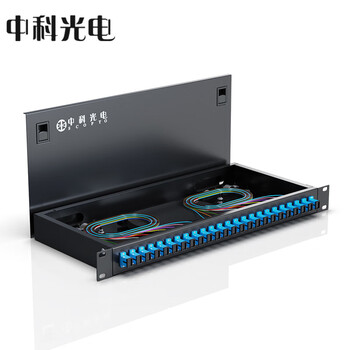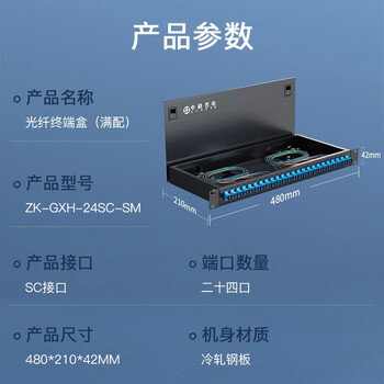 中科光电 光纤终端盒24口24芯光纤配线架 光缆接续盒接线熔纤盒SC单模满配尾纤法兰 机架式 ZK-GXH-24SC-SM