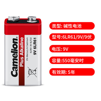 飞狮(Camelion)碱性电池 干电池 6LR61/9V/9伏 电池 1节 万用表/烟雾报警器/话筒/麦克风/医疗仪器