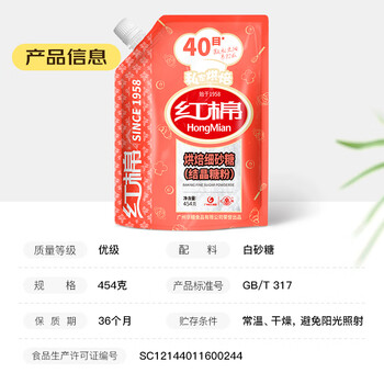 红棉碳法优级白砂糖厨房调味面包点心烘焙细砂糖结晶糖粉 454g
