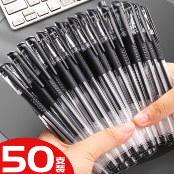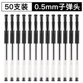 金值 50支黑色中性笔 0.5mm子弹头全针管水性签字笔 办公商务学生用水笔 考试专用碳素大容量笔芯