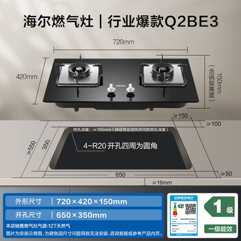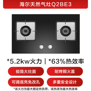 海尔(Haier)【推荐金榜爆款H70A】燃气灶天然气 家用台嵌两用双灶 5.2kw猛火灶一级能效 燃气灶BE3 可调节