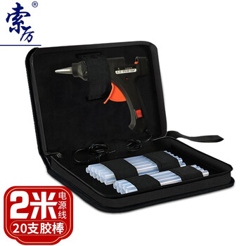 索厉 热熔胶枪5-20W胶棒7MM 适用电脑组装/工艺维修/带开关/标配20根白色胶棒/SL-RQ20黑色(收纳包款)