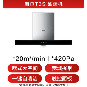 海尔(Haier)抽吸排油烟机 顶吸欧式一级能效 免费上门安装 家用吸油烟机T3S 20风量大吸力自清洁