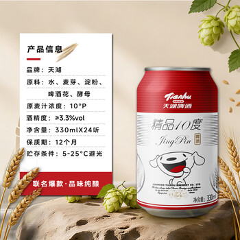 天湖啤酒精品10度330ml*24听经典拉格京东自营整箱装 店铺爆款