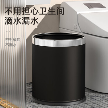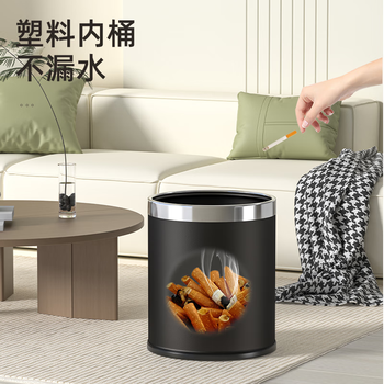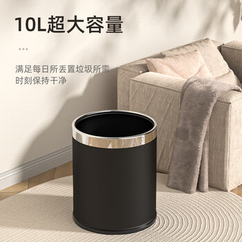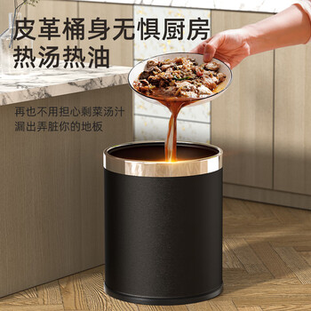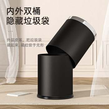 本迪压圈垃圾桶10L大号黑色酒店带内桶双层皮革塑料压圈垃圾桶