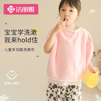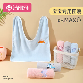 洁丽雅儿童洗漱巾口水巾宝宝刷牙围兜不湿衣A类柔软毛巾吃饭围嘴两条装