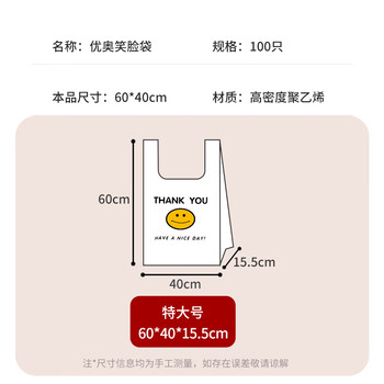 优奥塑料袋【40*60cm/100只】背心袋大号购物袋食品袋方便袋马甲袋