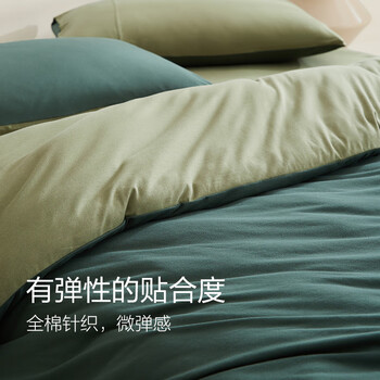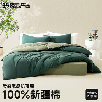 网易严选 A类新疆天竺棉100%全棉针织加厚保暖三件套墨绿色床单款1.2m床