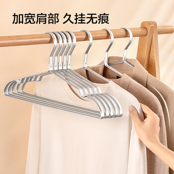 京东京造 衣架铝合金5个银色无痕衣服架宽肩衣架子太空铝晾衣架加宽衣服挂