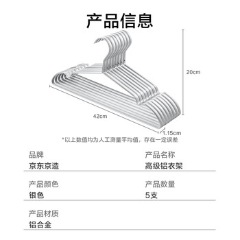生活日用---衣物洗晒/护理用具---衣架/夹京东京造铝合金宽衣架5个装