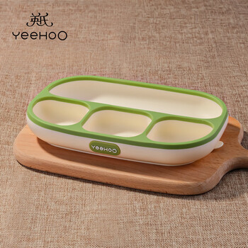 英氏(YEEHOO)宝宝餐盘儿童硅胶婴儿吸盘碗辅食分格餐盘吃饭餐具全硅胶 苹果绿