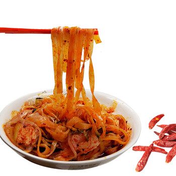 注:请您收到擀面皮后,务必按食用方法操作。面皮从袋子刚取出后不要搅动,以免捣碎,请将面皮蒸、煮、微波炉等方法处理后会自然松散、散开。(由于擀面皮属于发酵食品,开袋后有轻微酸味,属正常情况!以上产品图案仅供参考,产品以实物为准。)