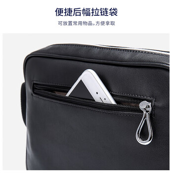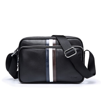 高尔夫(GOLF)单肩包男士头层牛皮配超纤斜挎包男商务通勤撞色邮差男包 黑色